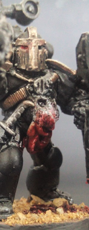 Gabriel Seth version hérétique, porteur d'un autocanon déversant la fureur de Khorne sur les troupes ennemis. Un casque cornu à la ceinture, des symboles de Khorne remplaçant ceux des Flesh Tearers.