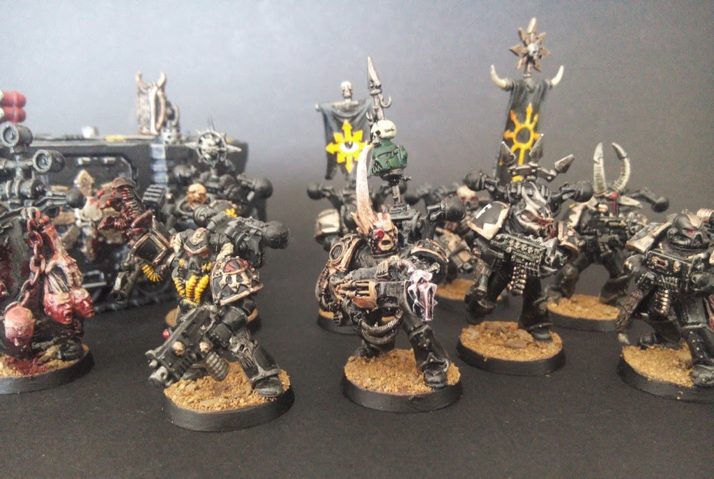 Le premier de la bande fait parti des Hounds of Abaddon, la moitié de son armure est rouge, il porte une épée de khorne. il fait parti des "conversions" des plus simples.